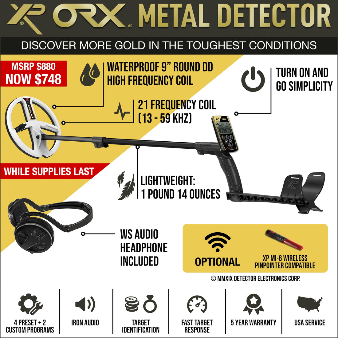 XP ORX Wireless Metal Detector with Back-lit Display + WSAudio Wireless Headphone + 9.5" Elliptical DD High Frequency Waterproof Coil