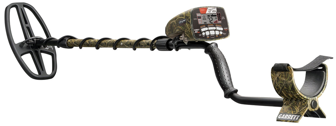 The Garrett Jase Robertson Signature Edition AT Max metal detector includes the AT Max metal detector dipped in the new Garrett Camo pattern, with a 6” x 11” DD Viper search coil (PN: 2224000), and these accessories from Garrett: Garrett MS-3 Z-Lynk wireless headphones (PN: 1627710); a Garrett Viper search coil cover (PN: 1613100); and a Duck Commander® branded duck call with lanyard (this item not sold separately). All of the included items are pictured in the main image above. Experience Powerful, wireless all-terrain performance. Built for the professional treasure hunter. Extreme depth and performance in all terrains with the Garrett AT Max, the perfect metal detector for land and underwater detection. This Garrett brand model is designed to meet all of your treasure hunting needs. Includes exclusive MetalDetector.com Free Bonus items shown in the picture above with the AT Max detector. Be sure to read our Guide Comparing the Garrett AT Pro, AT Gold and AT Max metal detectors.