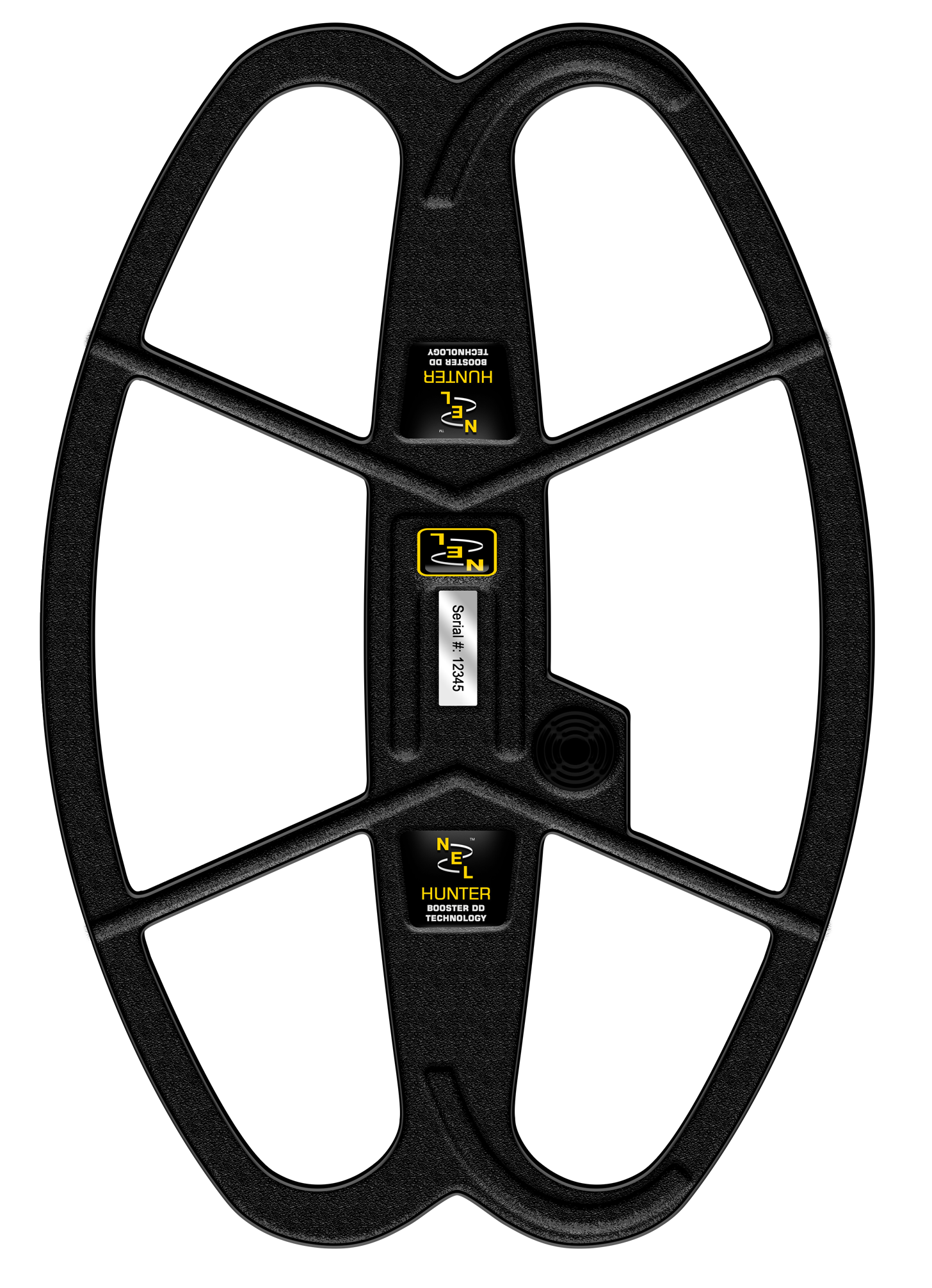 The NEL Hunter Coil measures 12.5" long x 8.5" wide, expertly designed for searching areas densely littered with iron and other debris. This DoubleD coil is remarkably lightweight for its size, weighing just 17.2 ounces (490 grams) with the coil cover, allowing for extended use without fatigue.
